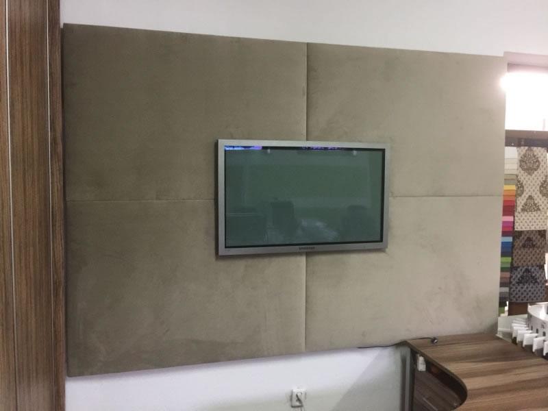 Můžete si vybrat z potahových textilií různých druhů i barev, koženek, kůží i kůží se srstí. Rozměry akustických obkladových panelů přizpůsobíme na míru interiéru, četně výřezů např. na televizi či okno.