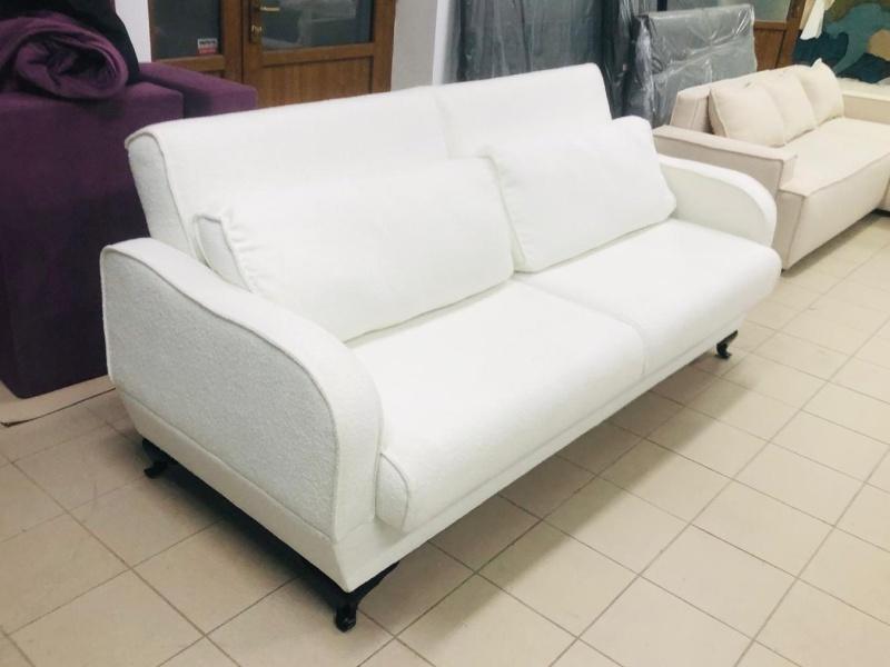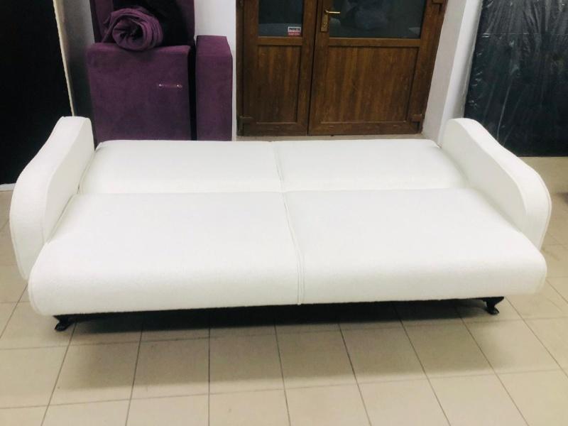 Praktická rozkládací pohovka v odolné bílé textilii.