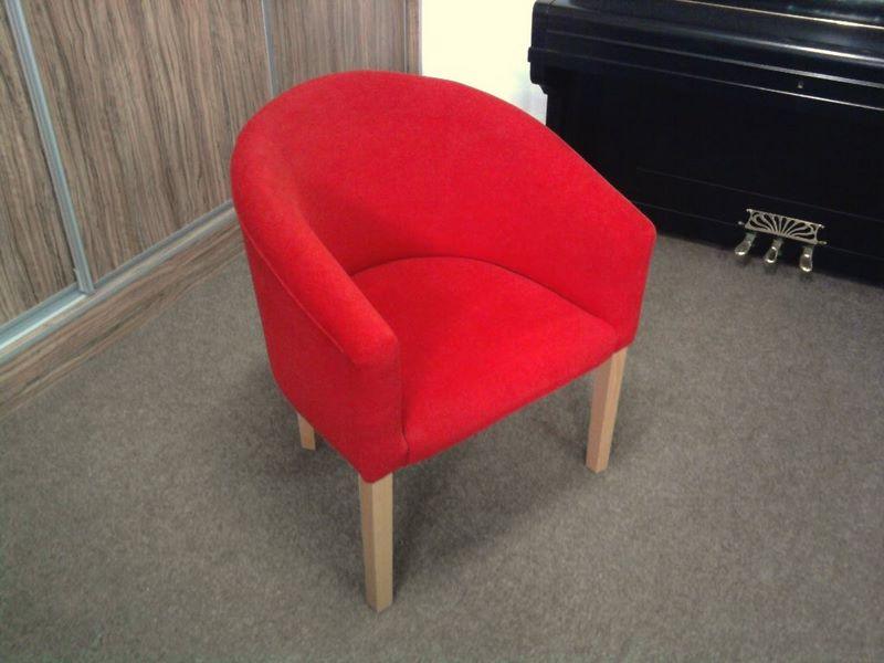 Křesílko potažené látkou vyžaduje pravidelné ošetřování a čištění, což prodlouží životnost potahovin.:
