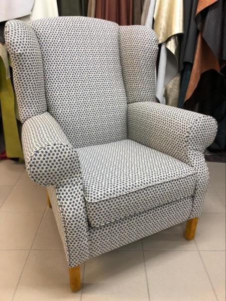 Kostra tohoto křesla je vyrobena z masivního bukového dřeva, plošné dílce jsou tvořeny překližkou. Plochy sedadla, opěradla, područek a uší jsou vytvarovány kvalitní PUR pěnou T3545. Všechny plochy tohoto ušáku jsou změkčeny PES rounem. Křeslo lze potáhnout libovolnou látkou nebo kůží, které máme v nabídce. Dřevěné nohy jsou součástí konstrukce kostry a je možné je namořit podle našeho vzorníku nebo podle vámi dodaného vzorku.