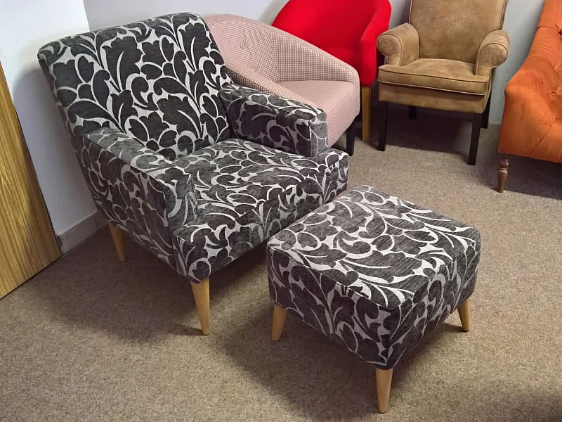 Křeslo s taburetem je v perfektním stavu a vystavené ve vzorkové prodejně u našeho prodejce v Poděbradech.