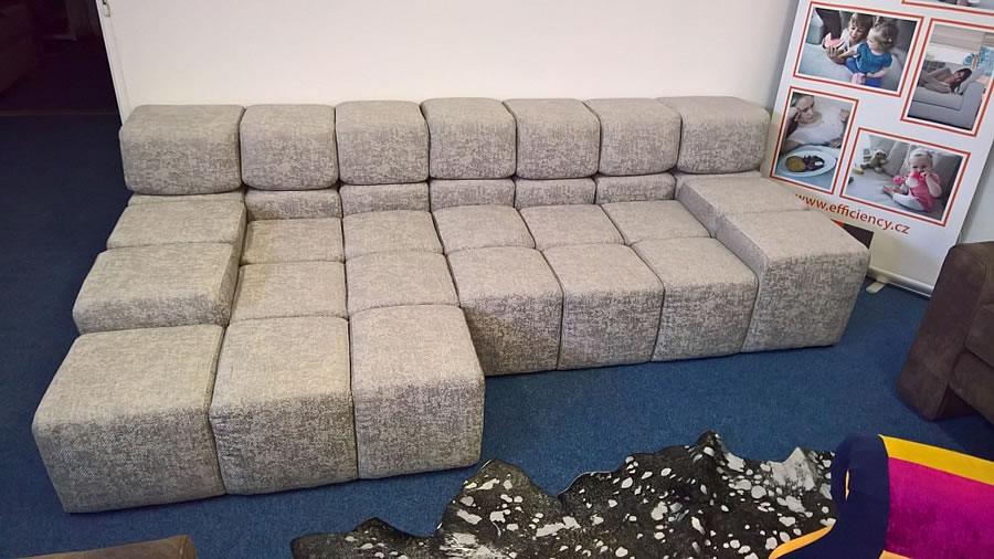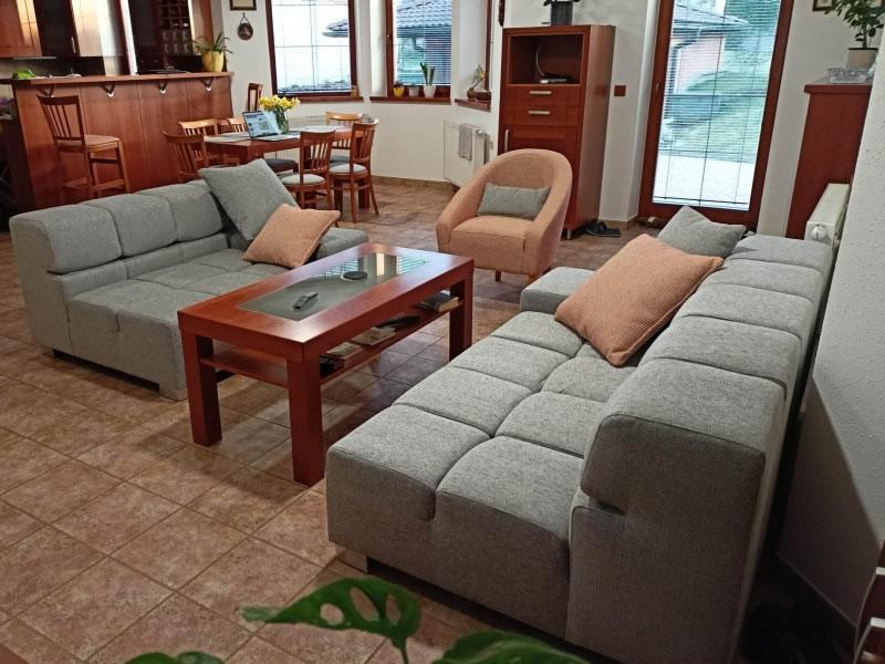 Pohovka potažená látkou vyžaduje pravidelné ošetřování a čištění, což prodlouží životnost potahovin.: