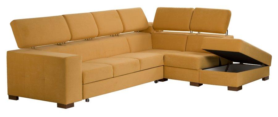 Zvedací podhlavníky dodávají tomuto modelu rohové sedací soupravy větší variabilitu použití. Se sklopenými podhlavníky je tato sedací souprava ležérním stylem vhodná pro příjemné posezení s přáteli, se zvednutými podhlavníky docílíme pohodlí při odpočinku či sledování televize. Rohovou sedací soupravu je možné opatřit rozkládacím lůžkem o rozměrech 150×200 cm pro odpočinek a příležitostné spa­ní.