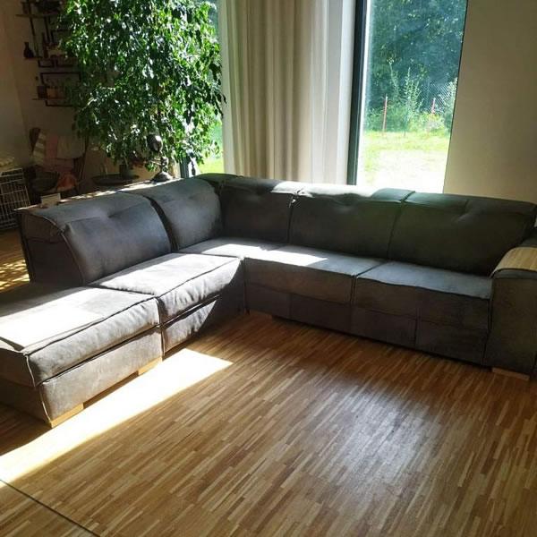 Sedací soupravu je třeba čalounit kůží nebo pružnou látkou (např. Mystic, Brunei, Niger…). Tuhé látky na tuto sedací soupravu nedoporučujeme (např. Carabu nebo Daytona).