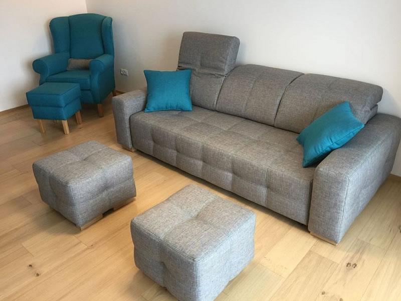 Sedací souprava potažená látkou vyžaduje pravidelné ošetřování a čištění, což prodlouží životnost potahovin.: