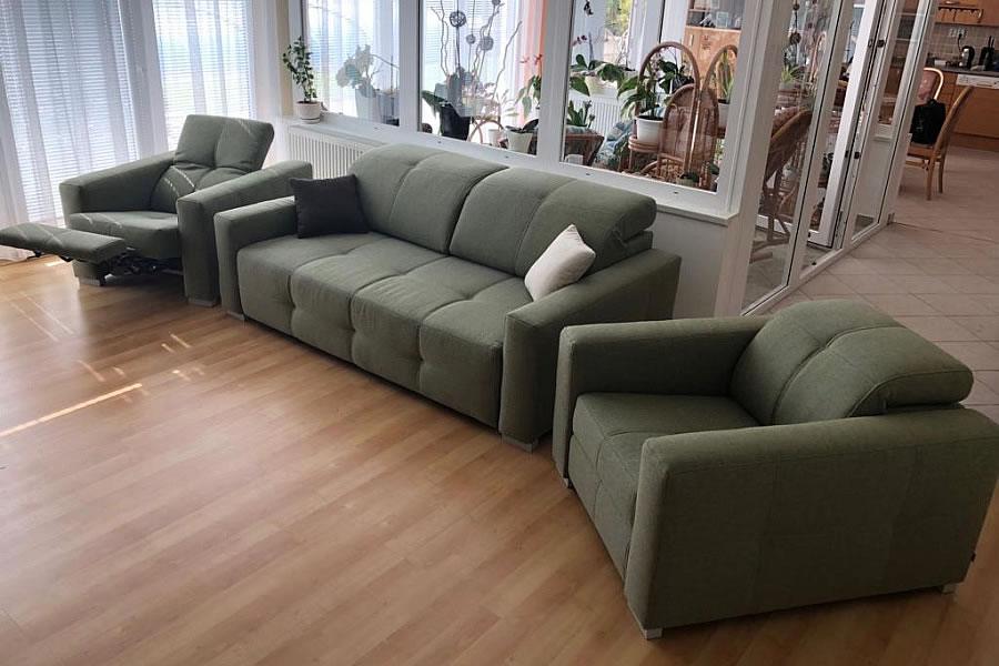 Sedací soupravu je možné očalounit kterýmkoliv potahovým materiálem z naší nabídky.