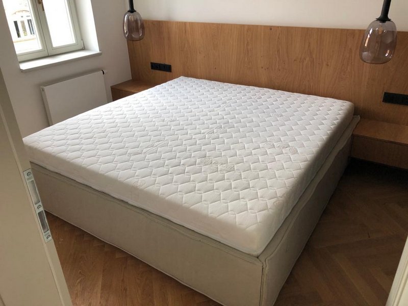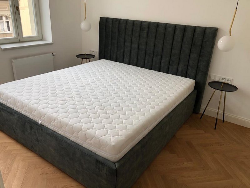 Ve spolupráci s architekty ze studia Čtyři stěny jsme vyráběli vybavení do apartmánů v Praze. Zakázku tvořily dva typy postelí – s čalouněným čelem a bez čela, rozkládací pohovky sloužící zároveň jako přistýlka a ležérní pohovky s jednou područkou ve výši opěráku. Nábytek jsme potahovali ve dvou druzích textilií – sametová látka Yama v zelené barvě a látka s hrubou strukturou Linen s příměsí lnu pro ležérní vzhled. Rozkládací pohovky jsou opatřeny kvalitním celokovovým mechanismem, který zajistí bezproblémové užívání a snese i vysokou zátěž každodenního spaní.