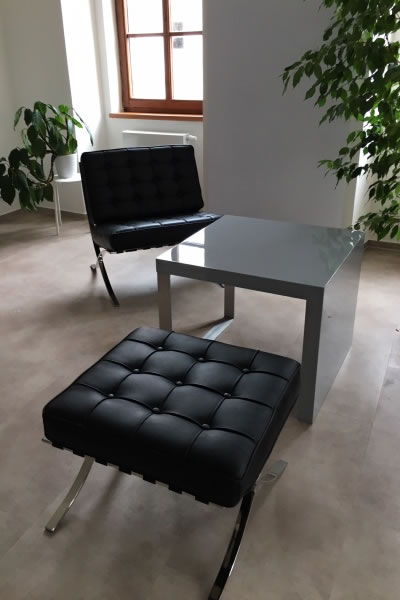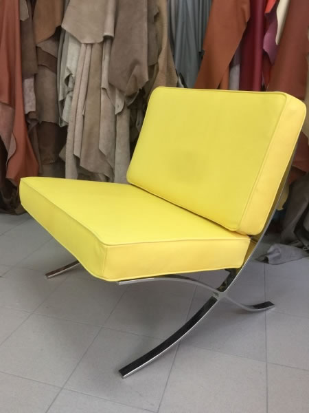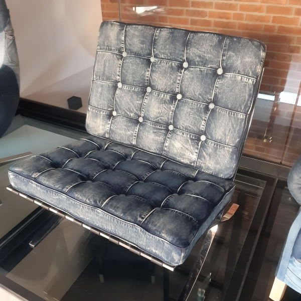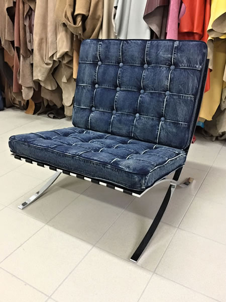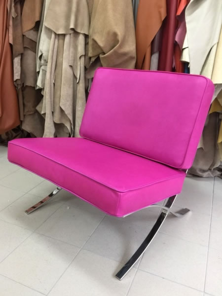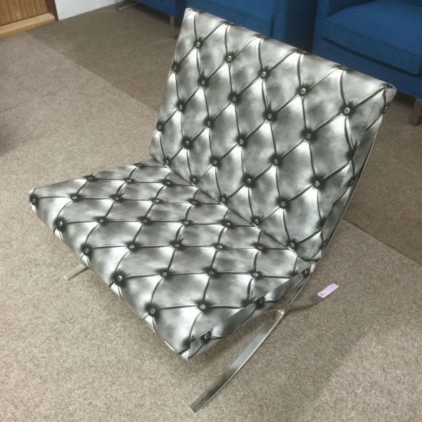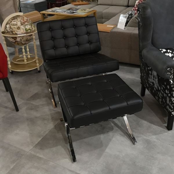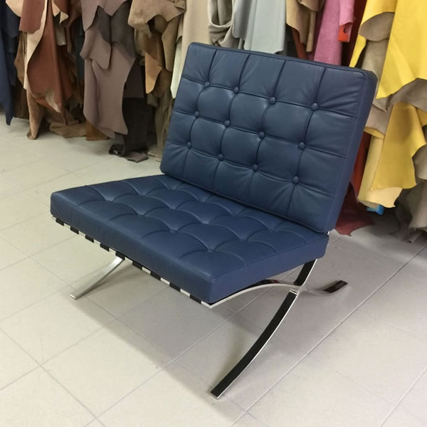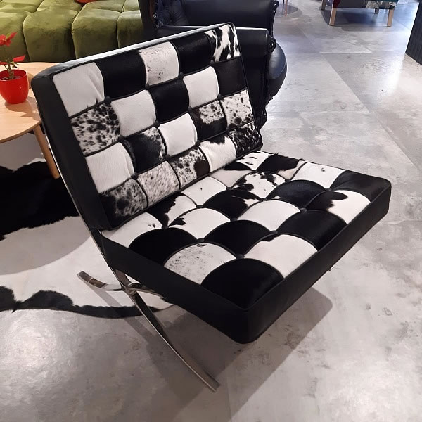 Luxusní křesílko s chromovou kostrou a jedinečným designem v mnoha barevných i stylových provedeních. Sedák a opěrák lze vyrobit s knoflíky a vtahy i na hladko. Potah může být kožený, látkový i z hovězí usně se srstí.