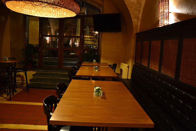 Výška lavic a výška sedu je shodná s výškou židlí v restauraci.