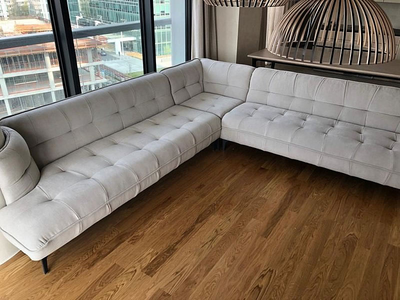 Podle návrhu studia MIBIKO design jsme vyráběli čalouněný nábytek a doplňky do luxusního bytu ve V TOWER v Praze. Předmětem zakázky byla rohová sedačka na míru interiéru, postel s čelem, taburety, čalouněné rámy zrcadel a lavička na botník.