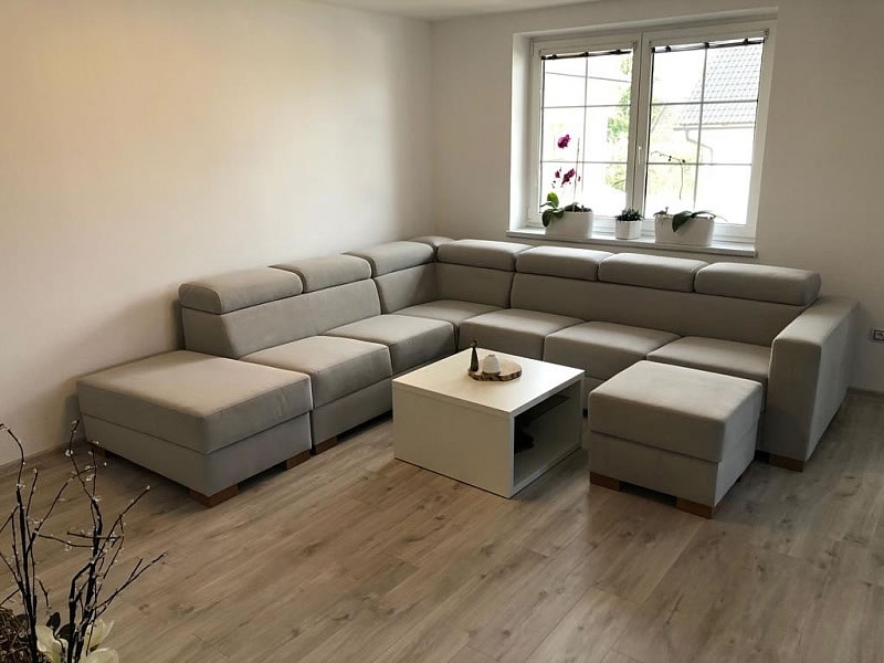 Ležérní a pohodlná sedací souprava v moderním stylu vynikne nejlépe ve větších interiérech. Rozměry i funkční prvky upravujeme na míru. Nechte se inspirovat některou z fotografií nebo přijďte s vlastním návrhem, pomůžeme Vám zrealizovat Vaši představu.