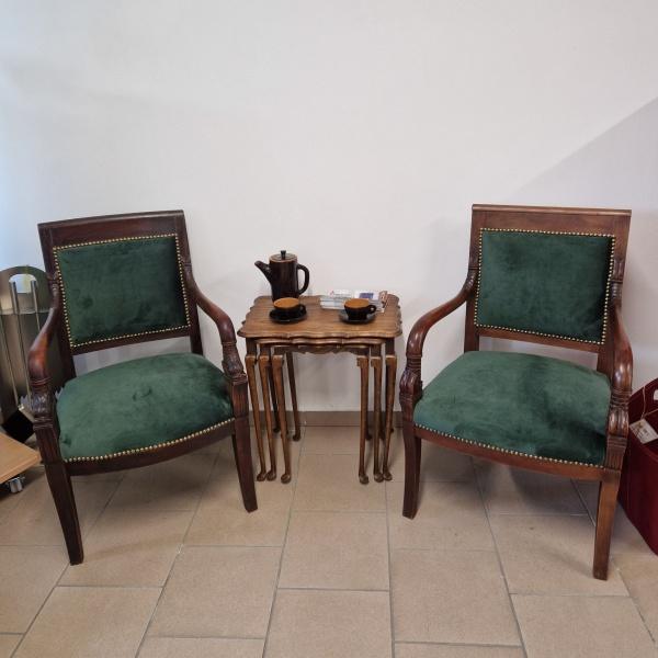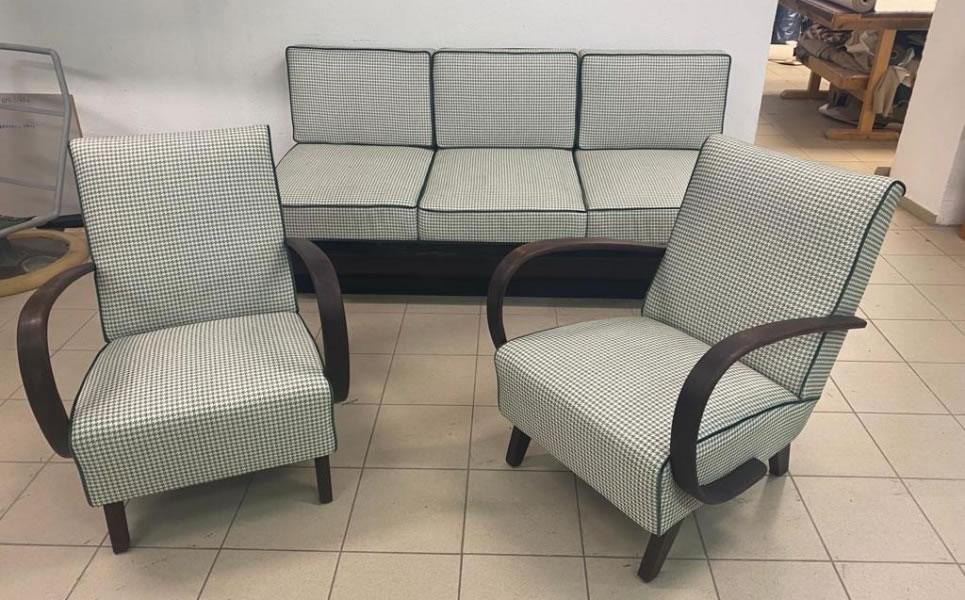 Dále provádíme renovace starožitného čalouněného nábytku. Vycházíme z původního vzhledu a snažíme se o maximální zachování jedinečného stylu každého kusu. Dlouholeté zkušenosti a zručnost v čalounickém řemesle, stejně jako tradiční zpracování materiálů zaručují dokonalé navrácení původního vzhledu čalounění a funkčnosti renovovaného čalouněného nábytku.
